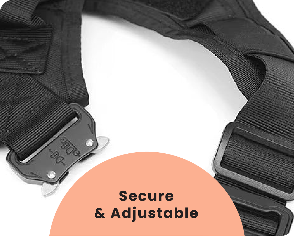 The harness is made with durable, high-grade Nylon, which is known for its strength, resistance to wear and tear, and water-resistant properties. This makes it perfect for all kinds of weather and outdoor adventures.